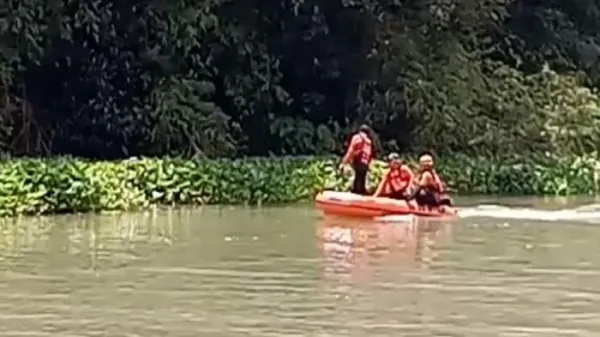 Sementara Ri tidak ditemukan, diduga tenggelam di aliran sungai yang sangat tenang ini.