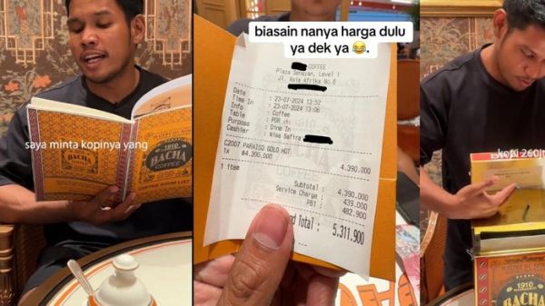 Di Bacha Coffee, ia memesan menu Paraiso Gold Hot seharga Rp 4,390,000 per porsinya. Setelah ditambah dengan pajak dan biaya layanan, ia harus membayar Rp 5,311,900 untuk pesanan itu.