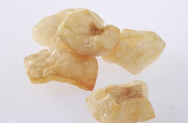 Kerupuk kulit sapi memiliki warna putih keruh dan sedikit kecokelatan.